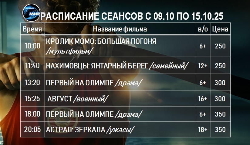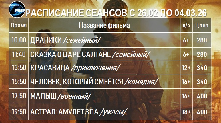 Администрация кинотеатра оставляет за собой право изменять репертуар по техническим причинам!