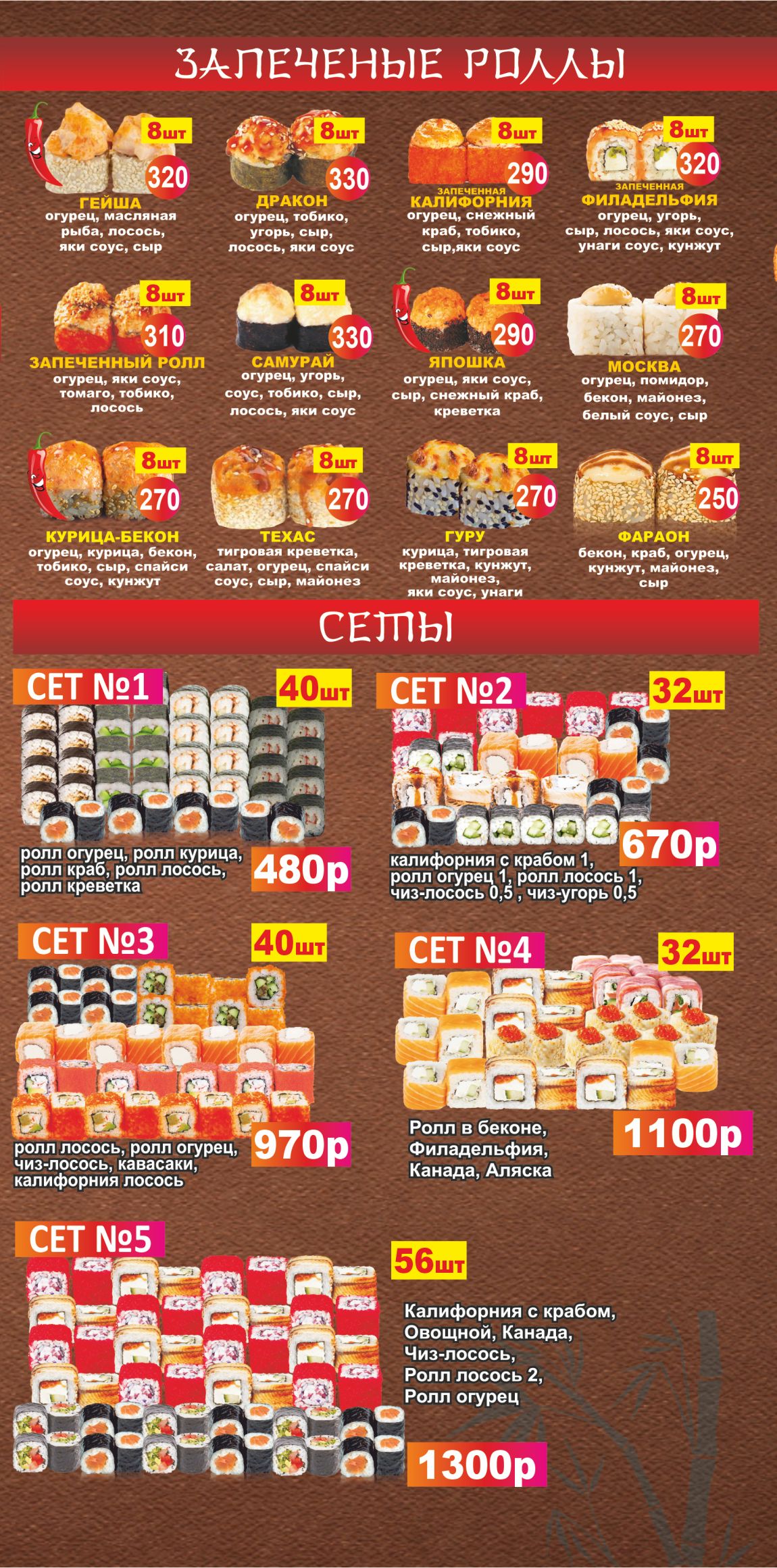 Меню Суши-бара "Бочонок" в Новоалександровске
